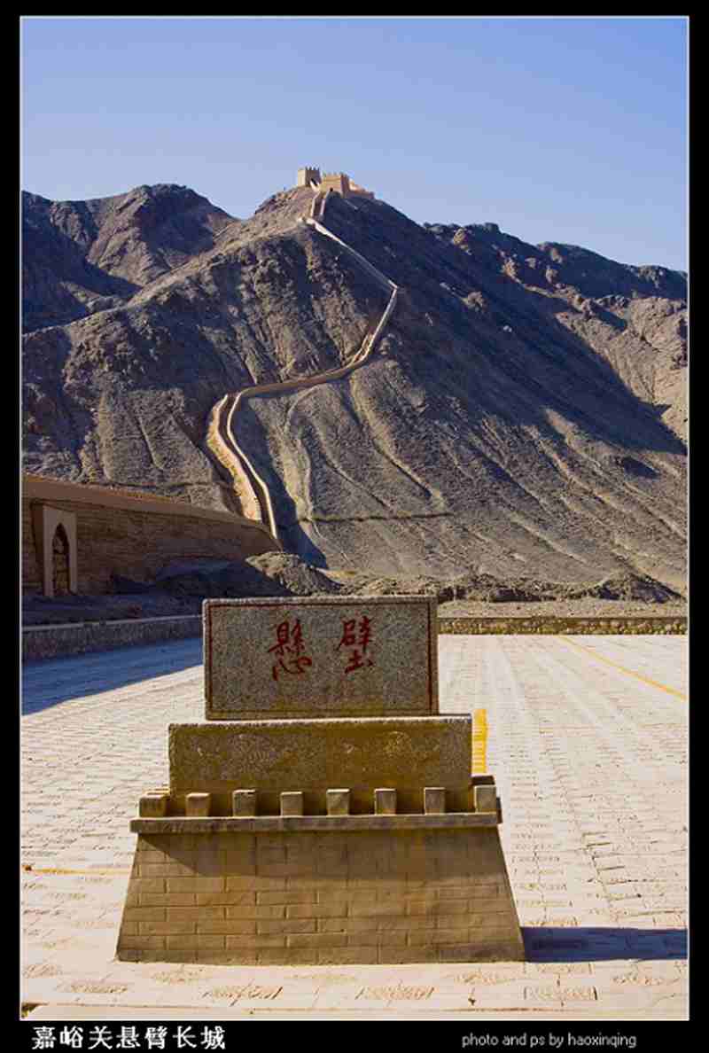 从关城往北约7.5公里处,就是有名的穿越黑山的天然孔道石关峡,明代为守护峡口,在峡口南北的黑山上均建有长城。黑山山势险峻陡峭,长城如蜈蚣登山,似铁臂悬空,蔚为壮观,被人们誉为西部长城的“八达岭”。