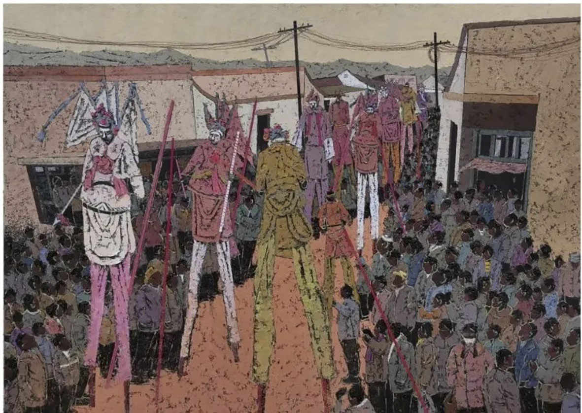 《亮宝节上的人们》 布面油画   130cm×180cm