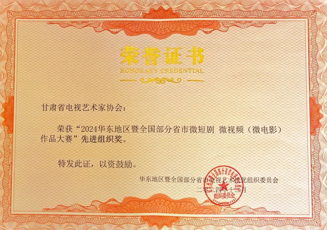 甘肃省电视艺术家协会因组织得力,荣获“先进组织奖”;组织报送的21部作品参评,其中13部荣获大赛奖项: